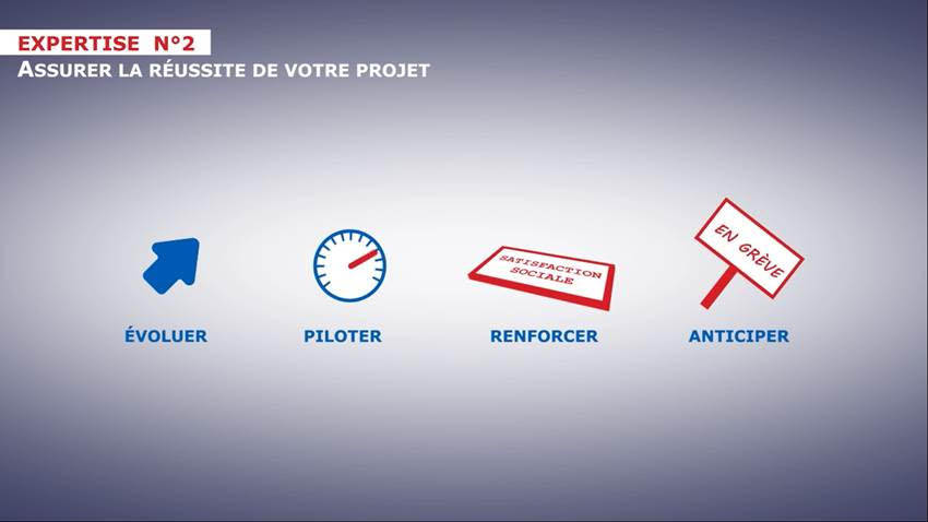 Grâce à notre savoir-faire, et notre méthodologie de la Qualité Sociale® nous vous aidons à anticiper et à gérer les enjeux sociaux liés à des transformations majeures de votre organisation. Notre conseil est à forte valeur ajoutée, car il est à la fois précis, pragmatique et orienté résultats.